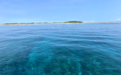 那覇市や宜野湾市あたりから船で行く場合、港の周辺や見える範囲ではベタ凪でほとんど波がなくて風も吹いていないのに、数km先から急に波が高くなっていたりすることがあります。